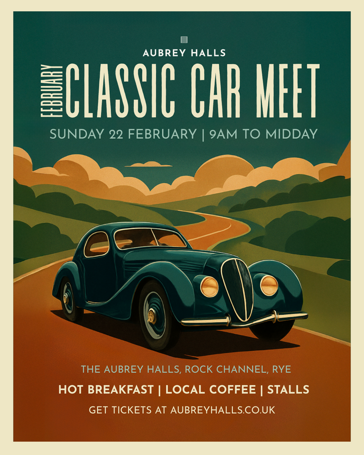 Join us for our February edition of Rye Classics, our monthly classic car and motorcycle meet at The Aubrey Halls, hosted in collaboration with Rye Bay Scallop Week. Expect classic cars, motorcycles, local coffee and pastries from Ground Up Coffee, hot breakfast with Rye Bay Scallops from The Mermaid Street Cafe, and a selection of other stallholders - focusing on vintage fashion in February - with drinks from our next-door neighbours at The Winery.
